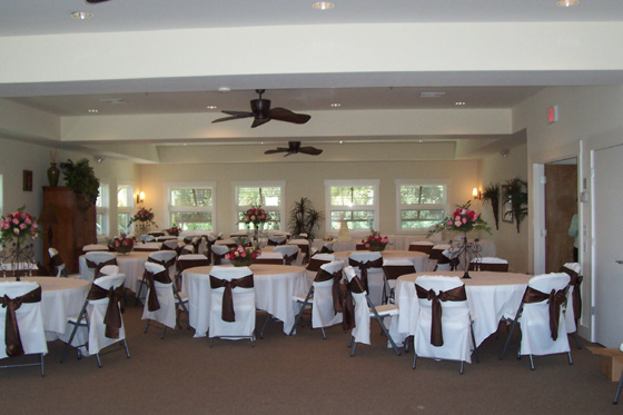 providing a dance floor, and tables for enjoying hors d'oeuvers.